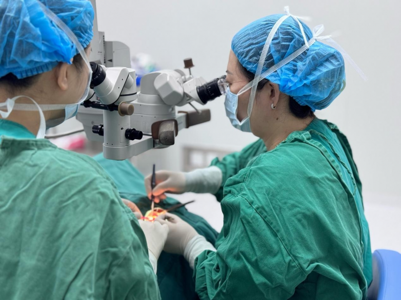 考虑到钟女士斜视角大、病情复杂的特点,杨秋艳主任在完善各项术前检查、充分评估手术风险并排除手术禁忌后,为其量身定制了个性化的斜视矫正手术方案 —— 左眼外直肌后徙 7mm,右眼外直肌后徙 9mm,联合右眼内直肌缩短 8mm。手术过程中,杨秋艳主任凭借丰富的临床经验和精湛的手术技术,在专业医疗团队的密切配合下,精准操作每一个步骤,确保手术安全顺利进行。术后,钟女士眼部伤口愈合良好,未出现感染、出血等并发症。