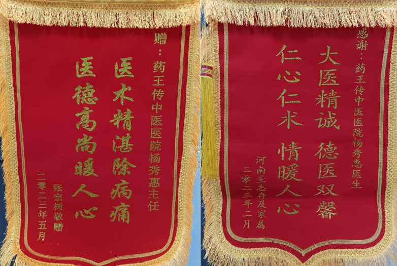 (康复患者送来感谢杨秀惠主任的部分锦旗)