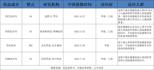这些药品多为RNA聚合酶抑制剂,对标药物为罗氏旗下被称作“流感神药”的玛巴洛沙韦片(商品名:速福达),作用机制接近。