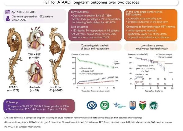 来源:Wei-Guo Ma, Yu Chen, Su-Wei Chen, Wei Zhang, Jun Zheng, Qing-Guo Li, Lingeng Lu, Jun-Ming Zhu, Gabriele Piffaretti, John A Elefteriades, Li-Zhong Sun. Frozen elephant trunk for acute type A aortic dissection: long-term outcomes over two decades. European Heart Journal, 30 January 2026