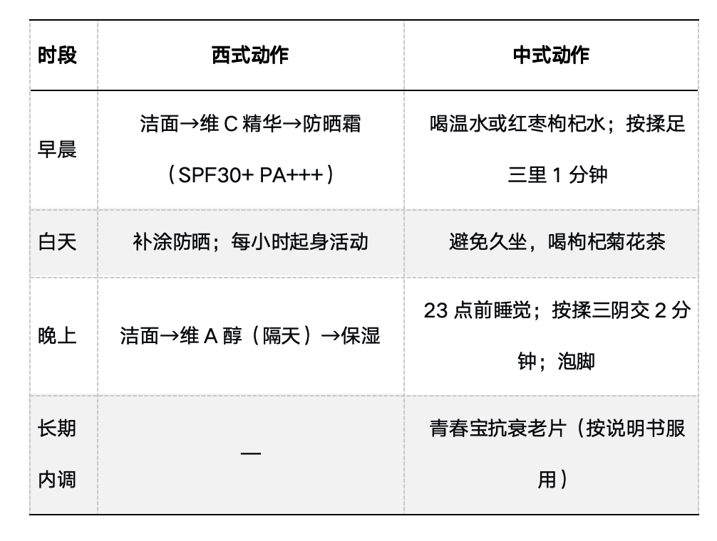 四、普通人可以直接照做的“中西合璧”抗老日程表