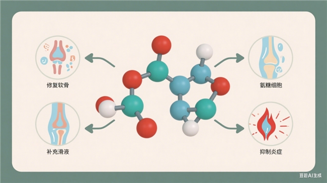 骨关节炎是一种以关节软骨磨损、破坏为核心特征的慢性退行性疾病。一旦软骨这层“缓冲垫”受损,关节面便会直接摩擦,遇寒、受潮时极易诱发炎症,引发疼痛与不适。而氨糖作为合成软骨细胞的核心原料,是软骨基质与关节液的基础成分。它既能修复受损软骨,又能补充关节滑液以减少摩擦,同时通过抑制关节腔内的炎症因子,从多维度延缓骨关节炎的进展[1]。不过,虽然盐酸氨基葡萄糖和硫酸氨基葡萄糖都是氨糖,但它们却存在很大差异。